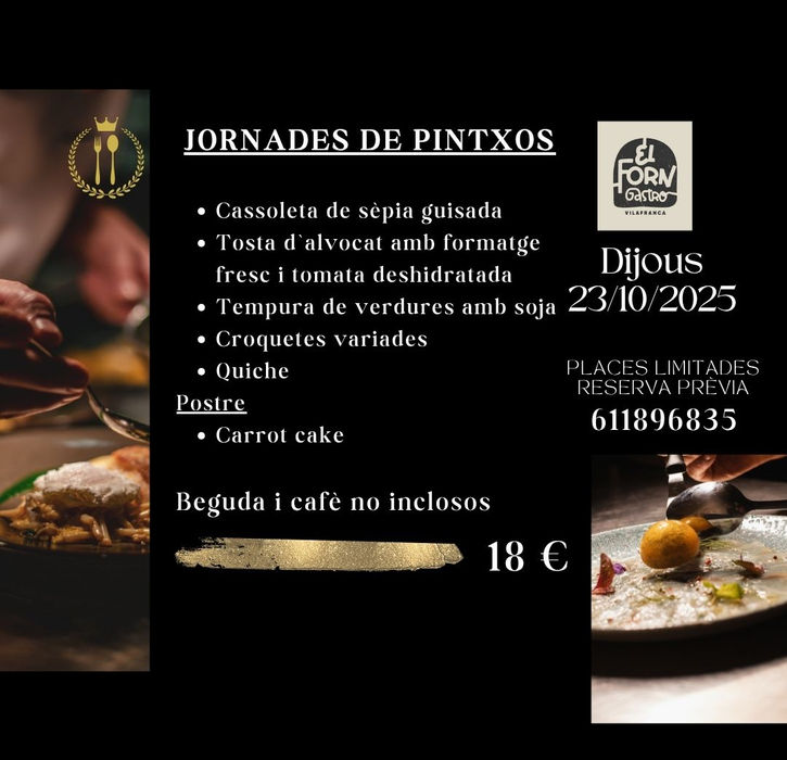 Cada setmana oferim una proposta diferent de pintxos, una cita que ja s’ha convertit en tradició a Vilafranca. Creativitat, bon ambient i sabors que canvien a cada edició per sorprendre’t i fer-te gaudir d’una nit especial entre amics.